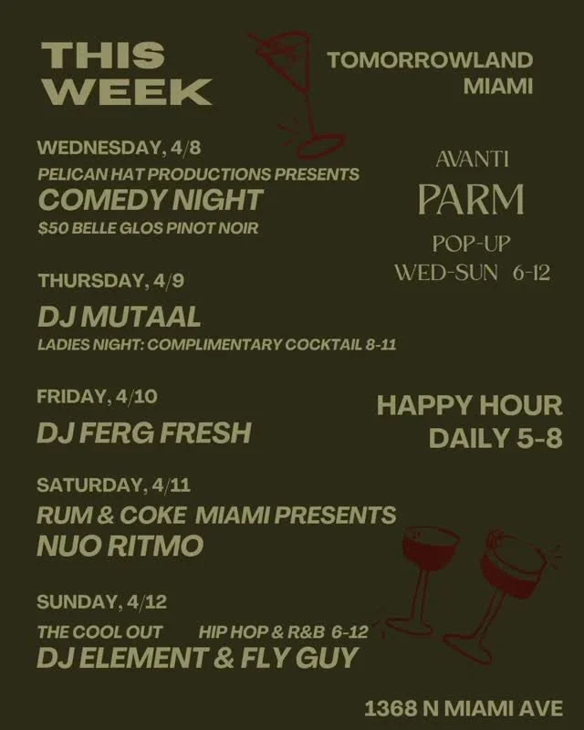 Tomorrowland’s daily happy hour is every evening from 4 PM to 7 PM. Whether you're enjoying a post-work drink or kicking off your night in style, Tomorrowland’s happy hour is the perfect excuse to treat yourself.